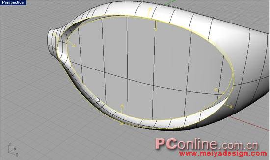 22.执行Surface>>Offset Surface,选择镜片曲面,在Top视图中向上偏移0.7个单位。