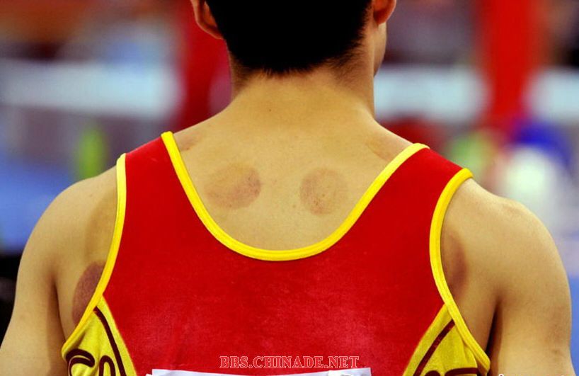 11月15日,中国体操小将吕博背上显示中医拔火罐的痕迹。当日他在广州亚运会荣获男子个人全能亚军。中新社记者贾国荣摄