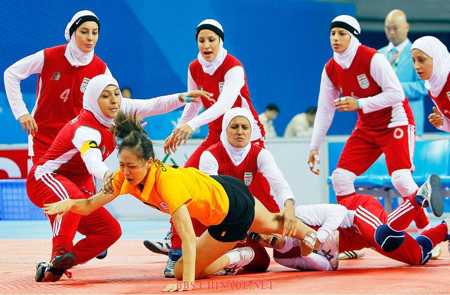 图为2010广州亚运会女子卡巴迪紧张激烈的比赛现场。