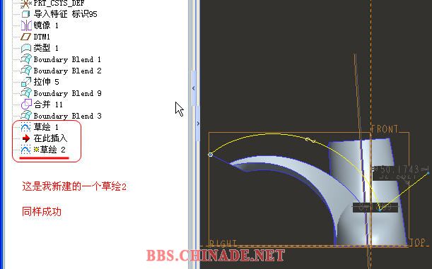 这是我自己新建的一个草绘二,一样可以延伸 176038 大家说的不能延伸可能是版本问题和个人设置问题, 上PRT大家讨论讨论 176039 vhu 发表于 2009-4-16 00:39